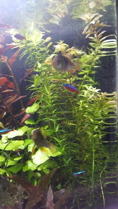 Θα ηθελα να σας παρουσιασω το ενυδρειο μου και να ακουσω γνωμες Τίτλος ενυδρείου: Planted 60l Διαστάσεις: 403Lx484Wx460H Λίτρα: 60 Χρόνος λειτουργίας: 3 μηνες Τύπος και διάρκεια φωτισμού: 36 watt Led - 8 ωρες Co2 και τρόπος διάχυσης: Ναι - inline diffuser Λίπανση: Ναι - EI dosing Υπόστρωμα: Fluval Strutum Φίλτρανση: Internal Bio Filter Θερμοκρασία: 25 pΗ: 7.4-6.8 GΗ: KΗ: 5.5 Λίστα φυτών: Λίστα ψαριών και ασπόνδυλων : 9*Cardinal Tetra, 5*Otociclus, 2*German blue ram, Amano Shrimp, 3*nerite |