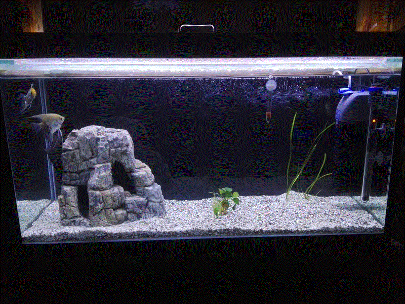 Πληροφορίες Διαστάσεις: DIY 95,5 Μ, 34 Π , 40 Υ Όγκος: 129 Κατηγορία: κοινωνικό Φυτά: valisneria , anubia Ψάρια / ¶λλα είδη: 2 αγγελόψαρα, 1 sinodontis Διακοσμητικά υλικά: χαλικι ψιλό, 1 βράχο (χαλίκι, ξύλα κ.λ.π.) Φόντο: οχι Φωτισμός: 2 σειρές led ψυχρου λευκου συνολικου φωτισμού 22 Watt Διάρκεια φωτισμού: 7 ώρες /ημέρα Φιλτράρισμα: Εσωτερικό φίλτρο Dolphin F2000 Θερμοστάτης: Eheim 3615 125 Watt Λίπανση: οχι Παροχή CO2: Οχι (ακόμα) Παράμετροι: pH: 8 Γενική σκληρότητα (GH): - Ανθρακική σκληρότητα (ΚΗ): - Αμμωνία (ΝΗ3): 0 Νιτρώδη (ΝΟ2): 0 Νιτρικά (ΝΟ3): 20-40 Αλλαγές νερού: Εβδομαδιαία στο 50% Θερμοκρασία: 25-26 ¶λλες πληροφορίες: Φωτογραφία: Τα αγγελόψαρα τρώνε τα φυτα συνέχεια . Περιμένω να μου έρθει το σετ για τις μετρήσεις GH/KH για να έχω πλήρης μετρήσεις. Ξέρω ότι έχω πολυ υψηλό Ph για τα αγγελοψαρα αλλα ειναι απο το δικτυο ετσι υψηλο. Θέλω να προσθέσω και αλλα ψαράκια αλλα με προβληματίζουν κάποια προβληματάκια ακόμα.