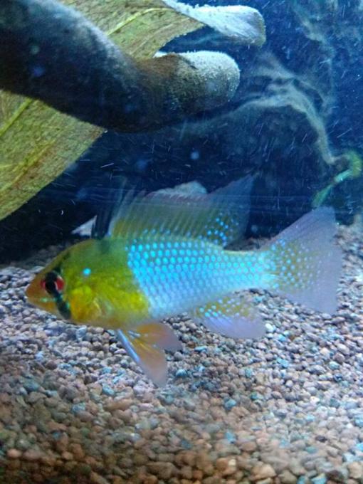 Επίσης στο αρσενικό σου απουσιάζει η χαρακτηριστική μαύρη βούλα που συναντάμε και στα δύο φύλα των german blue rams.