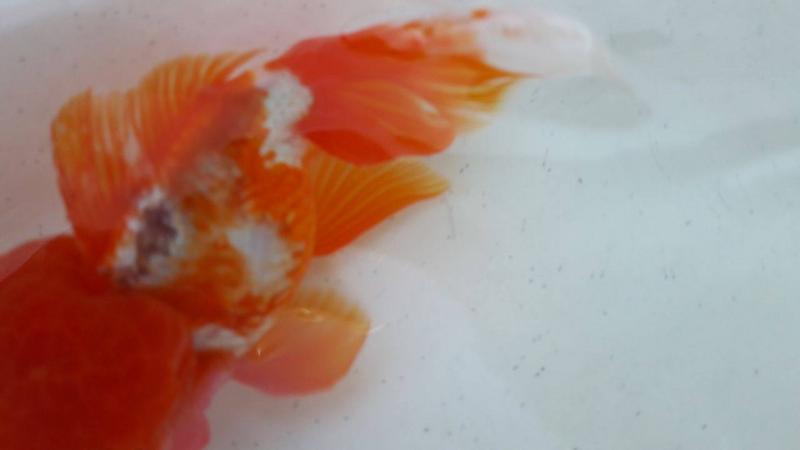 Οπότε ξεκίνησα αλλαγές νερού , αφού είδα ότι έφαγε και είναι σχετικά καλά, έβαλα την uv σε λειτουργία , καθάρισα μηχανική και βιολογική φίλτρανση και τον έβγαλα σε λεκάνη με το νερό της λίμνης τον κράτησα έξω (εκει που ειναι το ραχιαίο )και του έβαλα αρκετές φορές betadine . Θα δω πώς θα πάει τις επόμενες μέρες αφού αυτό θα το κάνω κάθε μερα για τουλάχιστον 5 μέρες συν τις καθημερινές αλλαγές νερού . Φωτο του τραυματία μου
