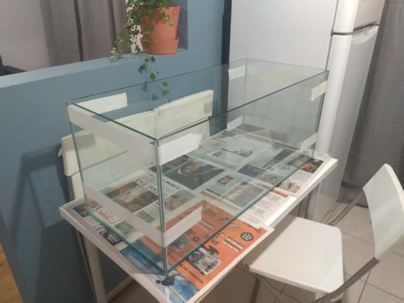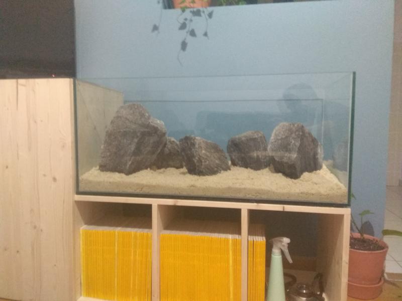Πίσω χρειάζεσαι ένα σκούρο φόντο (χαρτόνι ή μεμβράνη). Έχεις ξεκινήσει στρώσιμο? Για ψάρια τι σκέφτεσαι? |