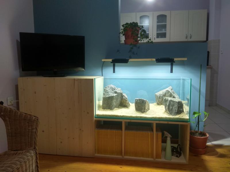 Τα τζαμια ηρθαν (8ρια τελικα) και κολλήθηκαν. Μετα απο μια εβδομαδα γεμισε (στο πατωμα, σε περιπτωση που εχουμε απροοπτα..) και μετα απο 48ωρες, ολα φανηκε να πηγαν καλα. Το ενυδρείο αδειασε, μεταφερθηκε στη θεση του, και μπηκε το hardscape (λεπτο χαλαζιακο χαλικι και ξυλοπετρες). Φωτισμος, δύο led flood lights 30W έκαστο: http://www.ledeshop.gr/product/1262/...30w-psyxro-fos απο τον οποιο, τουλαχιστον στο ματι, ειμαι προς το παρον πολυ ικανοποιημενος. Θα δουμε τι θα πουν και τα φυτα. Για φιλτρο τελικα, μετα απο συζητηση και μετρησεις με το παιδι στο petshop, κατεληξα στο: Sicce Whale 350 http://www.sicce.com/prodottiDettagl.../idprodotto=82 1100l/h, 6,5l καδο και μου χωρεσε τσιμα-τσιμα! Μολις σημερα παρηγγειλα και τα φυτα. Σχολια, παρατηρησεις? |
