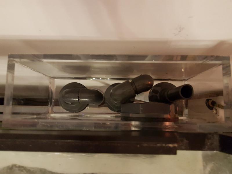 καθώς στήνω εκ νέου το ενυδρείο ένα από τα βασικά προβλήματα που είχα να λύσω είναι πώς θα κάνω αθόρυβη υπερχείλιση. Το ενυδρείο Jewel 400 έιχε μία τρύπα Φ60 μόνο και προφανώς δεν ήθελα να ανοίξω νέα. Δοκίμασα με ένα σωλήνα με διάφορες γωνίες Δοκίμασα με εξαγωγή κατευθείαν σε λάστιχο Δοκίμασα με διακλάδωση αμέσως μετά το τζάμι ώστε να είναι η μία εξαγωγή γεμάτη και η άλλη απλά συμπληρωματική. Δυστυχώς λόγο της μεγάλης διαμέτρου οτι κι αν έκανα (με την λογική οτι για λόγους ασφάλειας δεν ήθελα να το φράξω και αν κολλήσει κάτι στην βάνα να πλημμυρήσω) είχε πολύ θόρυβο. Ψάχνοντας για τρόπο να την κάνω αθόρυβη είδα την Eshopps Eclipse η οποία είχε αρνητικό (εκτός του κόστους) οτι στο σημέιο που ήταν η τρύπα του ενυδρείου δεν είχα χώρο για την τοποθέτηση. Πήρα την ιδέα όμως και σκέφτηκα να φτιάξω εγώ μία που θα λειτουργεί με τον ίδιο τρόπο! Παραγγελία Plexiglass πάχους 1cm λοιπον στις διαστάσεις που ήθελα (κόστισε 25¤) και την συνέχεια μπορείτε να την δείτε στις φωτογραφίες που ακολουθούν. Προσοχή στις εσωτερικές διαστάσεις γιατί ήμουν τυχερός και με διάφορες πατέντες ξεπέρασα το ότι δεν είχα υπολογίσει σωστά το μέγεθος από τους σωλήνες) Πλέον το νερο κατεβαίνει απο ένα σωλήνα Φ20 ελάχιστο απο τον δεύτερο και υπάρχει και τρίτος σαν εφεδρικός. Αντλία επιστροφής είναι μία Jebao DCT 6000 και λειτουργεί στο 90% Πιστεύω οτι είναι μια καλή λύση για όσους αντιμετωπίζουν παρόμοιο πρόβλημα. Σχόλια παρατηρήσεις ευπρόσδεκτα... |