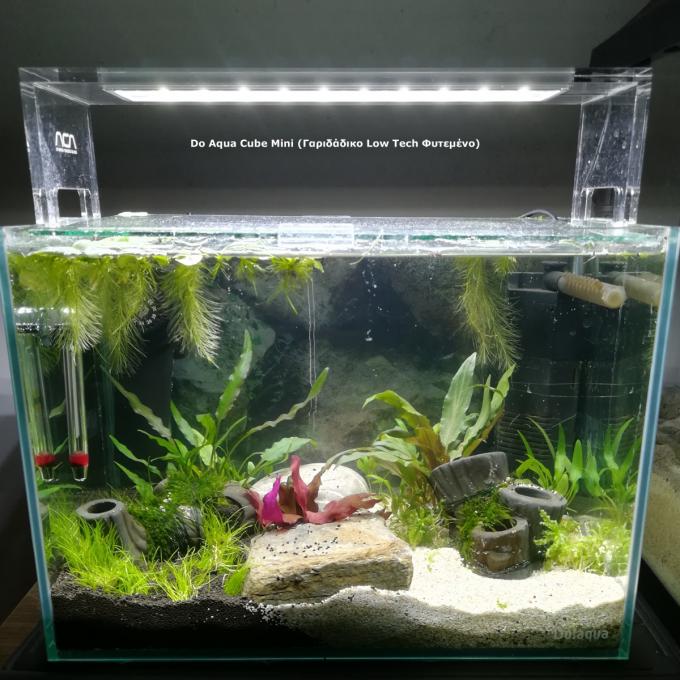 Τίτλος ενυδρείου : Do Αqua Cube Glass Mini M ( Γαριδάδικο Low Tech Φυτεμένο) Διαστάσεις : 36 x 22 x 26 Λίτρα : 20 Χρόνος λειτουργίας : από 20/10/2017 Τύπος και διάρκεια φωτισμού : AQUASKY 301, Colour temperature: approx. 7.000K, LEDs : 30 x 0,4W, Luminous flux 1450 - 1550 Lumen Ασπόνδυλα : - (Το ενυδρείο βρίσκεται σε στάδιο στρωσίματος) Υπόστρωμα : Ada Aqua Soil Amazonia & Jbl Sand Grey Λίπανση : Penac P & W: plant growth promoter. can improve bed environment, effectively prevent the bottom bed hardening, extend the bottom bed time of aging, promote the healthy growth of plant root. Bacter 100: substrate additive, containing more than 100 kinds of substrate bacteria in a dormant state. By sprinkling on the base substrate, it can make an ideal substrate environment. Clear Super: substrate additive made from activated carbon and organic acid. Helps the growth of microorganisms. By sprinkling on the base substrate, it promotes the growth of microorganisms in the substrate and stabilizes the environment. Tourmaline Bc: contains fine bamboo charcoal, absorbing organic pollutant substances and tourmaline. During the initial set-up, will help to improve the substrate environment. Co2 και τρόπος διάχυσης : - Διακοσμητικά Υλικά : Αφίσα πλάτης, Πέτρες & Διακοσμητικά για γαρίδες. Φίλτρανση : Nano Cornel Filter spraybar (Ada Bio Rio & Bio Cubes, sponge etc.) Θερμοστάτης : Aquael Easy Heater Θερμοκρασία : 22 C Λίστα φυτών : Eleocharis parvula, Pogostemon Helferi, Pistia stratiotes, Java Moss Cup Cryptocoryne wendtii Green & Cryptocoryne wendtii brown, Alternanthera Reineckii Roseafolia, Μετρήσεις : Αργότερα καθώς το ενυδρείο έχει μια μέρα που στήθηκε. ¶λλα Διάφορα : Ο εξοπλισμός και όλα τα παρελκόμενα έχουν αγοραστεί από εξωτερικό, καθώς δεν υπήρχαν Ελλάδα. Σύμφωνα με τις οδηγίες της Ada και καθώς έχει επαναληφθεί στο παρελθόν με επιτυχία, τις πρώτες 2 εβδομάδες πρέπει να γίνονται καθημερινές αλλαγές νερού λόγω των λιπασμάτων και του άμεσου φυτέματος. |