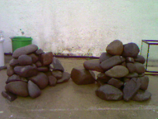 Πρωτα θα στησεις τις πετρες και μετα θα ριξεις αμμο ή χαλικι. Προσοχη ομως στα 120 λιτρα πολυ λιγα ψαρια. |