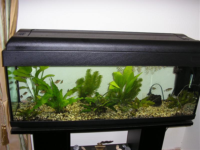 Λοιπόν το ενυδρείο είναι 120lt, έχω τροπικά ψαράκια δηλ. ινδιανάκια,πιγκουινάκια, μαύρη χήρα, και 2 ακομα ειδη που δεν θυμάμαι τα ονόματα κ φυσικά έχω κ τον γλύφτη ο οποίος έχει αναλάβει την καθαριότητα!! Κάτω έχω χαλίκι και θέλω να μου πείτε πως θα αποφύγω (με κάποιο υγρό φάρμακο ίσως) την πρασινάδα-γλίτσα που πιάνει! Τα φυτά μου τα έβαλα πρόσφατα! Χτες έβαλα σαλιγκαροπαγίδα γιατι τα μαύρα σαλιγκαράκια έτρωγαν τα φύλλα! Για backround σκέφτομαι να βάλω κάποια 3d εικόνα! Το μαύρο χαρτόνι λέτε να φαίνεται πιο ωραίο?