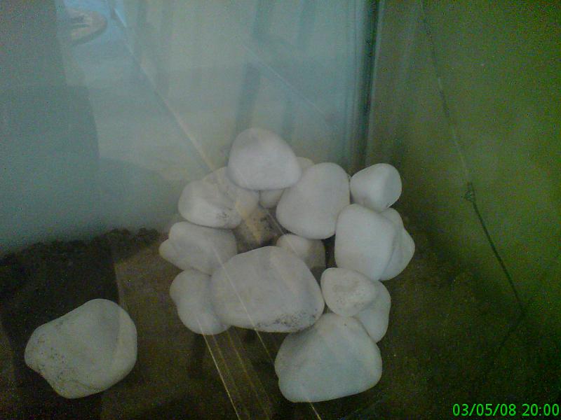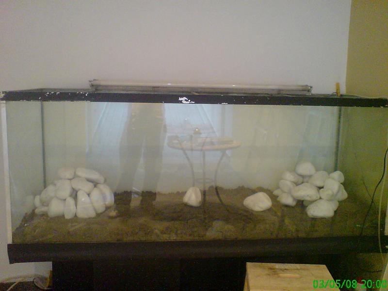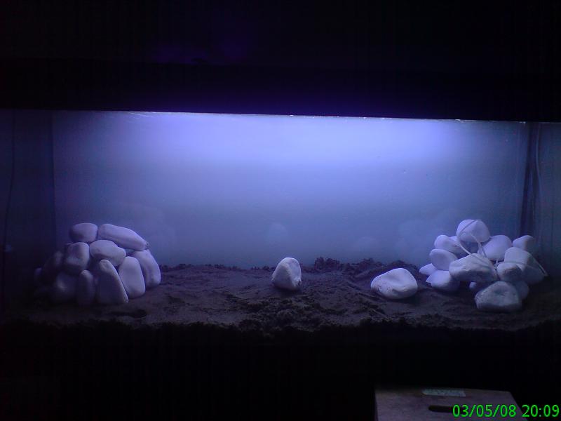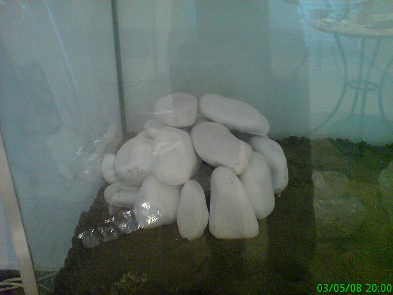 Τώρα φαίνεται λίγο αφύσικο το στήσιμο των πετρών. Σίγουρα θέλεις περισσότερες πέτρες για να φτιάξεις 2 "στοίβες" στις άκρες του ενυδρείου οι οποίες καλό θα ήταν να φτάνουν μέχρι πάνω, κοντά στην επιφάνεια. |