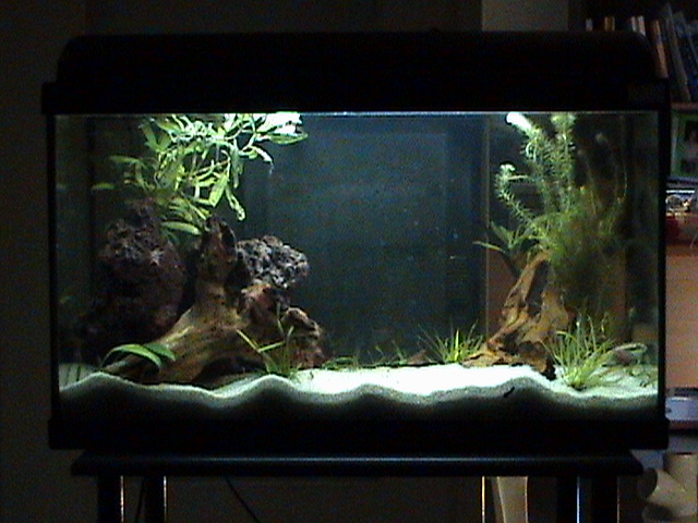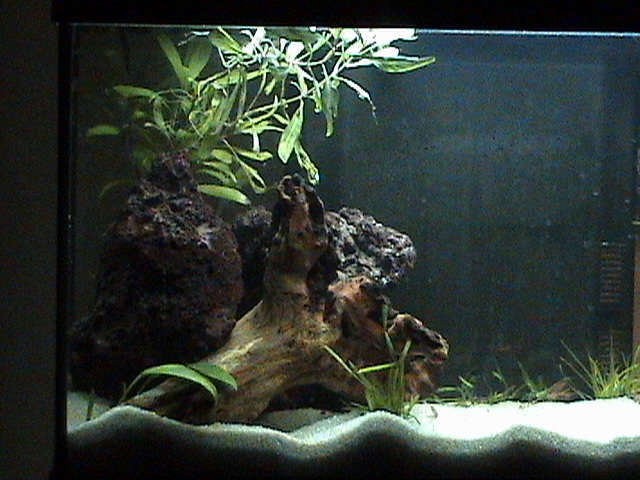 Πολυ ομορφο ενυδρειο, μπραβο!! θα χρειαστεις και αλλα φυτα μιας και στα κριμπ αρεσουν τα πυκνοφυτεμενα τοπια. μια καρυδα ειναι ιδανικη αν θελεις να δεις και μικρα!!πολυ ομορφο και παλι!