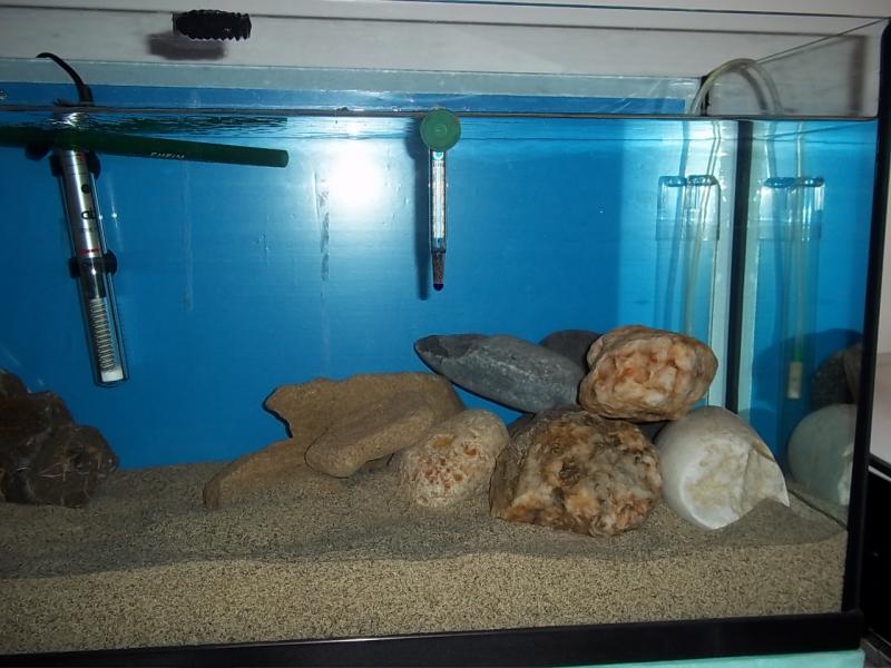 Τα λίτρα σου(και το μήκος του ενυδρείου) είναι οριακά για 2 είδη. Θα μπορούσες πάντως με το κατάλληλο στήσιμο (έναν όγκο πέτρας στην μια άκρη και στην άλλη κελύφη) να το προσπαθήσεις με 1 είδος κοχυλόψαρα + 1 είδος πετρόψαρα. Πχ. 'Lamprologus' multifasciatus http://www.cichlid-forum.com/profile...es.php?id=1749 ή 'Lamprologus' brevis http://www.cichlid-forum.com/profile...es.php?id=1743 ή 'Lamprologus' caudopunctatus http://www.cichlid-forum.com/profile...es.php?id=1590 μαζί με Julidochromis transcriptus http://www.cichlid-forum.com/profile...es.php?id=1536 ή Julidochromis dickfeldi http://www.cichlid-forum.com/profile...es.php?id=1525 Δεν θα συμφωνούσα με τον Vag για τα N.brichardi που είναι πολύ "περιοχικά" και "επεκτατικά' ψάρια και σε λίγο καιρό θα καταλάβουν όλο το ενυδρείο. Βάλε τον θερμοστάτη σε μια άκρη και στην απέναντι το θερμόμετρο. Αν βάλεις και μερικές ρίζες βαλισνέρια θα κρύψεις και τους σωλήνες. Αυτό δεξιά τι είναι? Φίλτρο βυθού ή έξοδος αεραντλίας? |