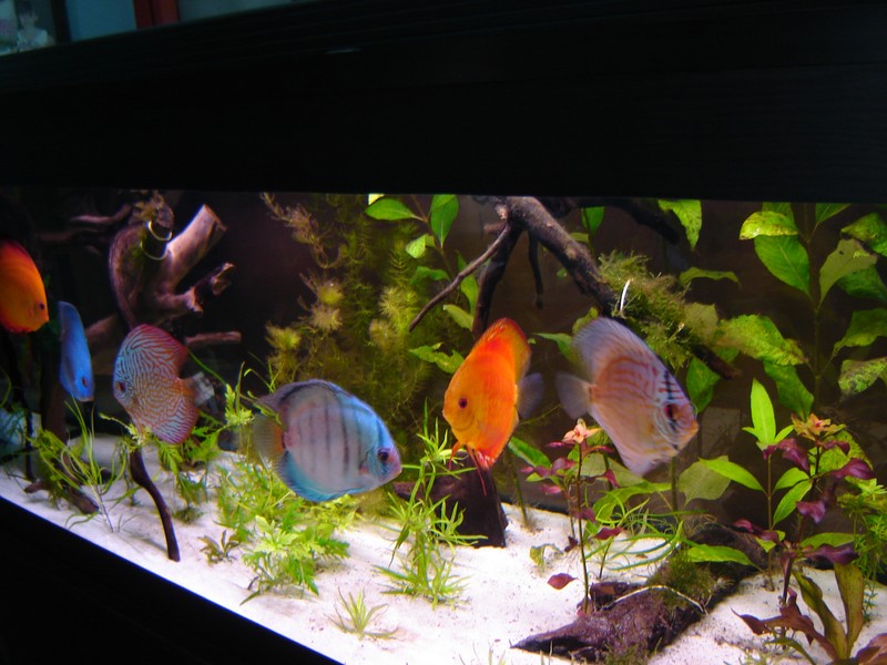 Διαστάσεις:190χ60χ65 Όγκος:850λιτρα μαζι με το sump Κατηγορία: δισκοι Φυτά:java moss- Rotala Green -Hereranthera Zosterifolia Cryptocoryne Wendtii- Hygrophila Lacustri- Hygrophila Difformis- κερατοφυλο anubias nana-valisneria gigandea Ψάρια / ¶λλα είδη: 10 δισκοι +8 corry +3 angistrus Διακοσμητικά υλικά:50 κιλα χαλαζιακη + ριζες Φόντο:καφε χαρτονι Φωτισμός: 2 grolux 54 watt +3 daylight 28watt t5 Διάρκεια φωτισμού:9 ωρες Φιλτράρισμα: sump 10 ltr siporax +10 ltr ελαφροπετρα Θερμοστάτης: 2χ300 jagger με stc 1000 Λίπανση: oxi Παροχή CO2:οχι ακομα Παράμετροι: pH: 7 Γενική σκληρότητα (GH):8 Ανθρακική σκληρότητα (ΚΗ):5 Αμμωνία (ΝΗ3):0 Νιτρώδη (ΝΟ2):0 Νιτρικά (ΝΟ3):5-10 Αλλαγές νερού:400 ltr ανα εβδομαδα Θερμοκρασία:28,5 σταθερα με stc 1000 τροφες 10 διαφορετικες ξηρες +κατεψυγμενες μοσχοκαρδια +bloodworms +κριλλ+αρτεμια |