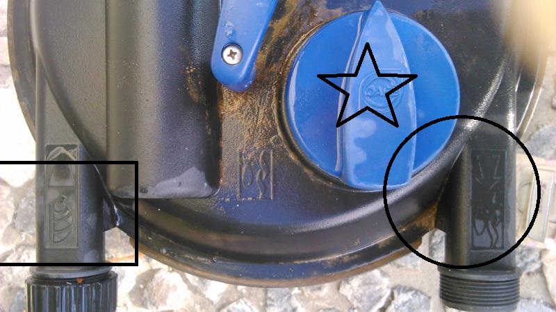 Κύκλος είναι η έξοδος του καθαρού νερού μετά την φίλτρανση (βάζεις μια σωλήνα να τρέχει μέσα το νερό στα ψαράκια ) Αστεράκι είναι ο ρυθμιστής του φίλτρου εκεί που είναι γυρισμένο στην φωτό είναι στην θέση καθαρισμός (πρώτα ανοίγεις την τάπα και μετά το γυρνάς εκεί οταν είναι σε λειτουργία η αντλία , έπειτα ανεβοκατεβάζεις το μπλέ χερούλι και συμπιέζει τα σφουγγάρια και διώχνει τις βρωμιές , για να γίνει καθαρισμός πρέπει να δουλεέυει η αντλία ) Έτσι όπως κοιτάς την φωτό αν γυρίσεις αριστερά στο ψαράκι τον διακόπτη είναι για να λειτουργεί η φίλτρανση και εννοείτε η πίσω τάπα του καθαρισμού να είναι βιδωμένη στην θέση της όταν δουλεύει . Δείξε την αντλία να σου πώ αλλιώς θα πρέπει να πάς σε τέτοια http://igna.gr/index.php/eshop/antli...hx-8830-detail , μέχρι να επισκευάσεις την λίμνη . Έκανες αλλαγή ?? προσπάθησες να δεις τα ψάρια ?? ανέβα με καμια σκάλα βρε πουλάκι μου Ξέχασα αυτό το φίλτρο έχει κάτι μύτες μπροστά για να βάζεις την σωλήνα ανάλογα με την διάμετρο της αντλίας τις έχεις ?????
