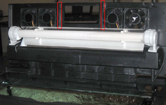 Τη φωτοπερίοδο γιατί τη μειώνεις? Τα λίτρα της εξάτμισης τα μετράς με σημάδια στο ύψος της γυάλας? Για την αυτόματη αναπλήρωση χθες διάβαζα ένα άρθρο για μια κατασκευή και έχω ήδη αρχίσει να το δουλεύω στο μυαλό μου. ------------------------- Update εβδομάδας. Ήρθαν οι αντικραδασμικές βάσεις, τρυπήθηκε το καπάκι και μεταφέρθηκαν τα ανεμιστήρια στο καπάκι. Τα dust covers περιμένω για να τελειώσουμε από εκεί. Πάντως δουλεύει σούπερ. Να'στε καλά για τις συμβουλές και τις παρουσιάσεις. Επειδή δεν ήθελα να φάω τα νεύρα του καπακιού για να στερεώσω κανάλι φόρεσα ανακλαστήρα οποίος έκρυψε και στερέωσε τα καλώδια και βοήθησε λίγο και το φωτισμό (καμία σχέση με το διπλασιασμό του φωτισμού που ισχυρίζεται η juwel. Φωτόμετρο δεν έχω αλλά με το μάτι το πολύ να πήρε 20-30%.). Τα τεστ ακόμα τπτ... Καθάρισαν με ξύστρα κεραμικής κάτι άλατα στις κόντρες που έδειχναν χάλια. Φυτεύτηκε limnophila sessiliflora περιμετρικά του φίλτρου για να το κρύψει λίγο. Τελευταία επεξεργασία από το χρήστη 60lt : 30-06-13 στις 12:09 Αιτία: Automerged Doublepost |