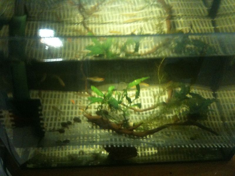 Τα ψάρια μετακινηθηκαν σε αλλο ενυδρειάκι πριν 2 μέρες με αεροφιλτρο, και σιτα απο κάτω...