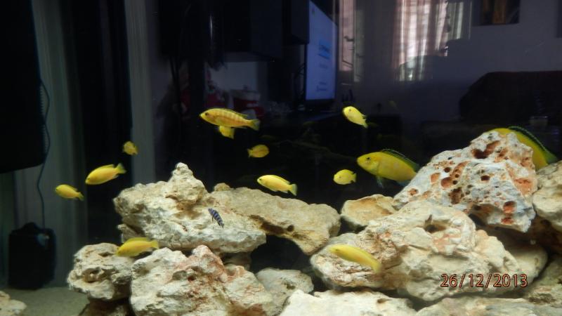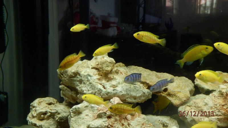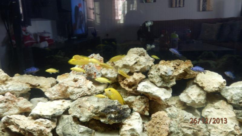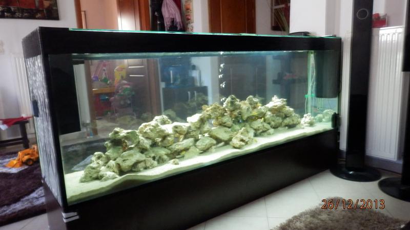 Γενικές Πληροφορίες Διαστάσεις Ενυδρείου :200x50x70 Συνολικά Λίτρα:740 Οργανισμοί Φυτά: προς αναζητηση βαλισνεριες και ανουμπιες Ψάρια: labidochromis caeruleus, pseudotropheus demasoni Διακοσμητικά υλικά Πέτρες: διαφορες απο τη φυση Υπόστρωμα: χαλαζιακη αμμος Φωτισμός γυρω στα 2 μετρα λαιντοταινια rgb η οποια αναβει και σβηνει λιγο πριν τον κυριο φωτισμο αυξομιονωντας την ενταση ωστε οσο τα καταφερνω να αναπαριστω ενα συστημα ανατολης-δυσης Παράμετροι pH: 8 Γενική σκληρότητα (GH):16 Ανθρακική σκληρότητα (ΚΗ):11 Αμμωνία (ΝΗ3):0 Νιτρώδη (ΝΟ2):0 Νιτρικά (ΝΟ3):15 Μέση Θερμοκρασία (°C) 26 Συντήρηση Αλλαγές νερού:25-30% καθε 15 μερες |