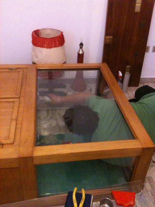 Το ενυδρειο αυτο το ειχε κατασκευασει ο πατερας μου αλλα οταν εκανε εμενα,λογω εξοδων, ταλαιπωριας, κλπ με παιδι 3 χρονων στο σπιτι το ενυδρειο εγινε μια μεγαλη βιτρινα που στολιζε καραβακια!Τωρα ηρθε η σειρα μου να συνεχισω και να αναβαθμισω το ενυδρειο του πατερα μου μετα απο περιπου 25 χρονια! Ετσι λοιπον ηταν το ενυδρειο στην αρχη! Αυτος ειμαι εγω και βγαζω τις παλιες σιλικονες! ξεβαμα του πισω τζαμιου και αφαιρεση του λουστρου με remover και πολυ,πολυ γυαλοχαρταρισμα! Επειτα βαψιμο σε πολλα χερια με βερνικι εμποτισμου χρωματος wegge και μετα απο 2 εβδομαδες λουστραρισμα! Περασμα καινουριας σιλικονης στα τζαμια και δοκιμη με νερο.Εδω να σημειωσω οτι το ενυδρειο ειναι απο μεσα σιδηροκατασκευη και απεξω ντυμενο ξυλο και τα τζαμια πατανε κοντρα στον σιδερενιο σκελετο.Απλα αθανατο. Τοποθετηση φοντου και τελικο αποτελεσμα Σειρα εχουν τα ηλεκτρολογικα.η ιδεα ηταν να κρατησω το εξωτερικο πινακακι που ειχε φτιαξει ο φαδερ αλλα η καλωδιωση επρεπε να γινει ολη ξανα,μιας και ηταν σαν κοκορετσι απο καλωδια.κοπη ξυλου για πλατη λοιπον,αγορα καινουριων διακοπτων καλωδιων κτλ και παμε.τα κοκκινα ταμπελακια που λειπουν απο το πινακακι τα ειχα χαλασει εγω μικρος.καλα λενε πως οτι μαλακια κανεις θα τη βρεις μπροστα σου μια μερα... Τοποθετηση φιλτρου JBL 1500 e και σωληνωσεων! Ετοιμο και λειτουργει.παρουσιαση του τι ψαρια εχει μεσα κτλ εχω κανει στις παρουσιασεις κοινωνικων ενυδρειων.http://www.aquatek.gr/vb/showthread.php?t=81801 Η ολη εργασια διηρκησε 1 χρονο περιπου.νομιζω οτι το αποτελεσμα αξιζει.δουλευει εδω και 6 μηνες περιπου και τωρα εχω ξεκινησει και τη προσθηκη co2.επισης DIY. ![]() ![]()
