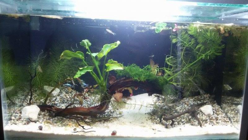 Διαστάσεις:75x30x35 Όγκος:63L Κατηγορία:Κοινωνικό - Φυτεμένο Φυτά:cryptocoryne, vallisneria , hygrophila , Bacopa caroliniana, java moss, , vallisneria, bacopa monnieri ,ceratophyllum,anubia nana Ψάρια / ¶λλα είδη: 4 edler μικρά ,6 πλατυ , 20 red cherry , μερικά physa snails , αρκετα trumpet snails, πολλά ramshorn snails blue , και 2 hellena Διακοσμητικά υλικά: χαλίκι, ρίζες , άμμος. πέτρες Φόντο: μαύρο χαρτόνι Φωτισμός: 24 watt (προσωρινά μέχρι να γίνει το καπάκι) Διάρκεια φωτισμού: 9 ώρες Φιλτράρισμα: 1 φίλτρο εσωτερικό των 450 λτ/ώρα Θερμοστάτης: 100w Λίπανση:- Παροχή CO2: diy C02 Παράμετροι pH: 7,5 Γενική σκληρότητα (GH): 8 Ανθρακική σκληρότητα (ΚΗ): 5 Αμμωνία (ΝΗ3): 0 Νιτρώδη (ΝΟ2): 0 Νιτρικά (ΝΟ3): 10 Αλλαγές νερού: μία φορά τη βδομάδα 40% οι φωτογραφίες είναι απο την αρχη του στισίματος θα μπουν και νέες σύντομα!