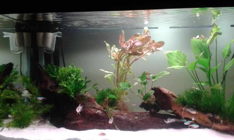 Καλημερα σας!!! Λαμβανοντας υπ'οψιν τις γνωμες σας και χρησιμες συμβουλες κατεληξα στο να προσθεσω μερικα φυτα γρηγορης αναπτυξης και σε αλλαγη του εξωτερικου μου φιλτρου,ωστε να φτιαξω ενα καλυτερο περιβαλλον για τα ψαρια μου και να μειωσω τις αλγες.Αυτη την στιγμη ειναι ετσι