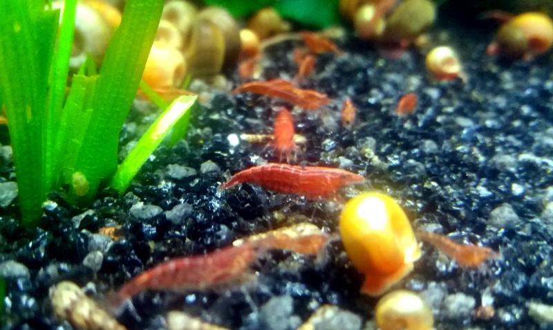 Είμαι στα σχέδια ενός γαριδάδικου 50χ40χ45 70 lt περίπου καθαρά που λειτουργεί με μικρά γκαπι που θα δοθούν σε φίλους.τα προβλήματα αρχίζουν γιατί στην επαρχία τα υλικά δεν τα βρίσκουμε εύκολα.το ψάχνω για μαύρο χαλαζιακό χαλικάκι ή άμμο. Μος θα μου δώσει ένας φίλος από φυτά δεν υπάρχει πρόβλημα το 200lt το κλαδεύω κάθε βδομάδα. Τώρα το ενυδρείο έχει διακοσμητική λάβα από το praktiker αλλά νομίζω ότι δεν κάνει για φυτά. Από γαρίδες Red Cherry και Amano. (περιμένω απόψεις και σχόλια.)