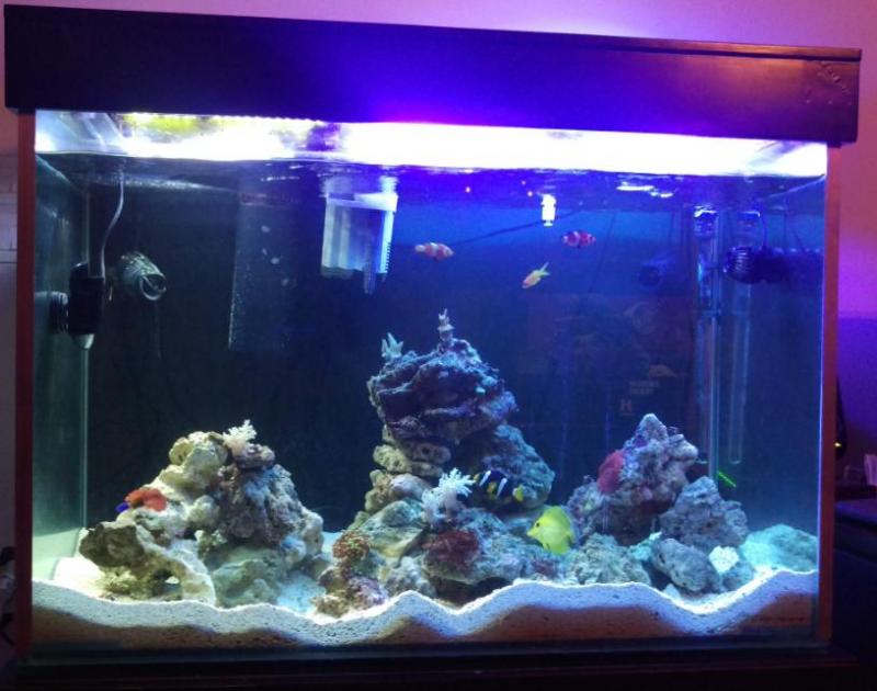 το Σαββατοκυριακο ασχοληθηκα με τον φωτισμο...εβαλα 1 24w Τ5 actinic ,2 blue plus, kai mia 11 watt solaris....υπαρχει και η ταινια led 70watt..για αρχη ειναι καλος ο φωτισμος...απλα δεν ηθελα να τον τοποθετησω μεχρι να τελιωσω την ψυξη..και απο οτι φανηκε καλα εκανα διοτι η θερμοκρασια ανεβαινει πολυ γρηγορα με λαμπες Τ5..το παρατηρησα χθες και απο 26 η θερμοκρασια ανεβηκε 27 σε 2 ωρες....