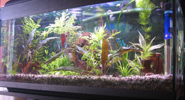 Ιδού σε φωτό το φυτό που παρατηρήσατε και το ψάρι που δεν θυμάμαι πως λέγεται. Να είστε καλά, να έχετε υγεία, αγάπη, ευτυχία και προκοπή Υ.Γ. Ο θερμοστάτης μου τον τελευταίο καιρό πιάνει κάτι ασπρίλες σαν άλατα. Υποψιάζομαι σκληρότητα νερού??? |
