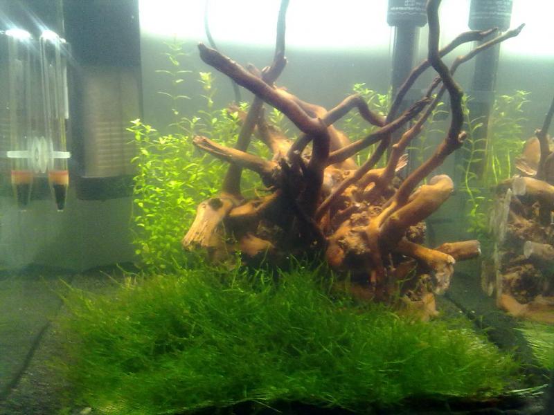 Η μοςς όπως είναι τοποθετημένη μου μοιάζει σαν ξένο σώμα. Σαν κάτι να μην κολλάει. Σίγουρα αν την κούρευες να έδειχνε καλύτερα. Επίσης οπωσδήποτε θα πρέπει να βάλεις περιμετρικά κάποια φυτά. Εμένα μου αρέσει πολύ το Micranthemum umbrosum. Βεβαίως έχει περισόττερες απαιτήσεις από την μοσσ