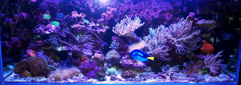 Φωτισμός στο ενυδρείο :Τ5 Arcadia marine blue(actinic) x 2, Ati aquablue special, Ati purple plus, Shanda x 2 (10000kelvin θα αλλαχτούν το