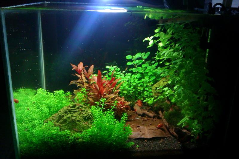 Φυτά: Lobelia cardinalis "mini", Fissidens fontanus, Bacopa caroliniana, Bacopa australis, Alternathera reineckii "mini", Hemianthus glomeratus (micranthemoides), Riccia fluitans, Ceratophyllum demersum, Cryptocoryne (αγνώστων λοιπών στοιχείων)