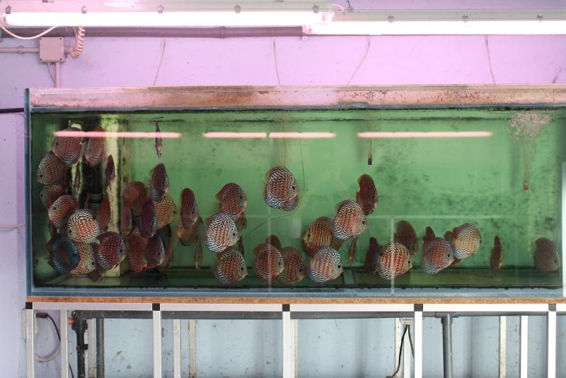 Ειδικότητά τους τα pigeon gene strain!!!200 ενυδρεία,120 ζευγάρια,ένα ενυδρείο τεσσάρων τόνων γεμάτο με δίσκους για το μελλοντκό breeding stock τους,δίσκοι σε όλα τα μεγέθη,απο γόνο ημερών μέχρι ενήλικα 20 εκατοστά,εκκολαπτήριο αρτέμιας,συσκευαστήριο.Πήραμε την κάμερα και χαθήκαμε μέσα στην λάβα του δωματίου.