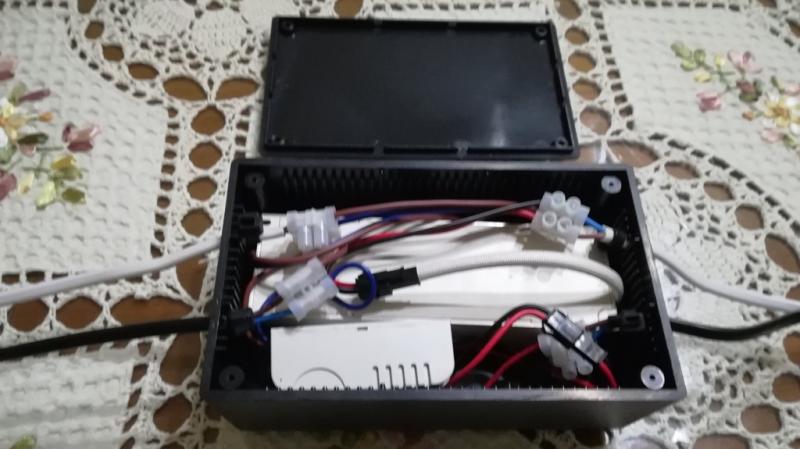 Δημιούργησα 2 κανάλια και έβαλα χωριστά τα λευκά από αυτά με το χρώμα. Τα led κολλήθηκαν σε λαμαρίνα αλουμινίου πάχους 3mm και πίσω από κάθε led έβαλα μία μικρή ψύκτρα. Στο όλο σύστημα προσέθεσα 3 ανεμιστηράκια 50mm (ή 40mm, δεν θυμάμαι...) τα οποία τα δουλεύω στα 6V και είναι πραγματικά αθόρυβα. Τα έχω σε χρονοδιακόπτη όπου λειτουργούν για 15', κλείνουν 30', ανοίγουν 15' κοκ... Σαν αποτέλεσμα έχω να μην ανεβάζει ιδιαίτερα θερμοκρασία το φωτιστικό, έχω μετρήσει μέγιστο 35 βαθμούς.