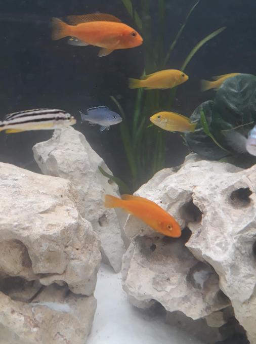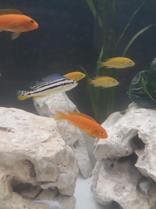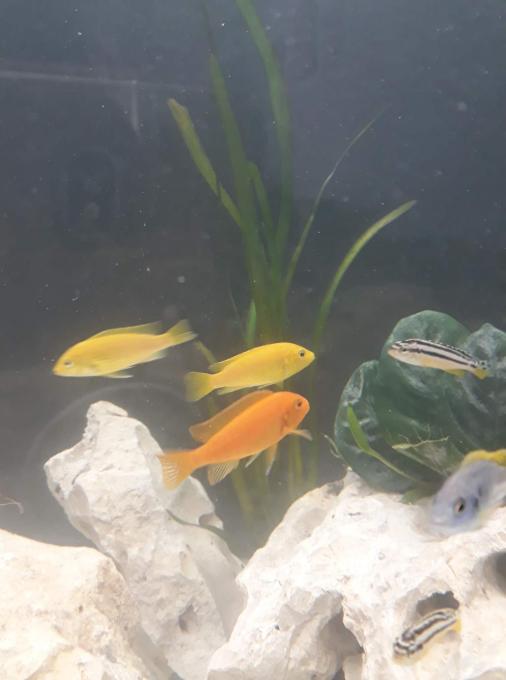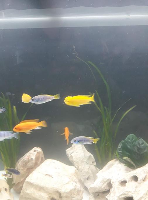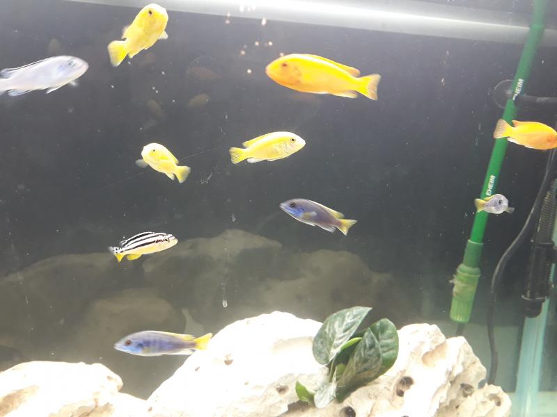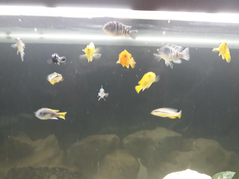 Για τα υπόλοιπα δεν έχω καθαρή εικόνα (τα πορτοκαλί μάλλον είναι Metriaclima estherae). Βάλε κοντινότερες φωτο και θα ήθελα να γράψεις πόσα έχεις από το κάθε είδος.