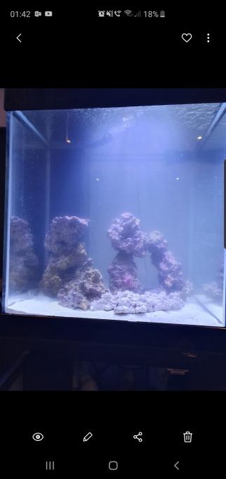 Επιτέλους στα 34 μου αξιοθηκα να κάνω ένα παιδικό όνειρο πραγματικότητα. Το πρωτο μου θαλασσινό ενυδρείο. 😁😁😁 η ευτυχία μου δεν κρύβεται. Καλοδεχόυμενες οποίες συμβουλές από τους παλιούς κ έμπειρους. Γιατιβσαν νέος κ εγώ σίγουρα θα εχω κάνει τα λαθάκια μου. Έχουμε κ λέμε. 48 ώρες λοιπόν σε λειτουργία. 250 λίτρα τετράγωνο. Pet worx. 50 λίτρα είναι στο φίλτρο. Σήμερα έβαλα μέσα τον κύριο βράχο και το αλάτι και αύριο θα βάλω τους άλλους 2. Ο βράχος συνολικά θα είναι περίπου 25κ. Παραθέτω φωτο από κάτω παιδιά. Μια ερώτηση. Στο πετσοπ μου προτείνανε να ρίξω μέσα αμμωνία. Τι λέτε? Ευχαριστώ πολύ, Γιώργος |