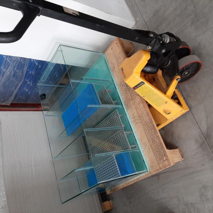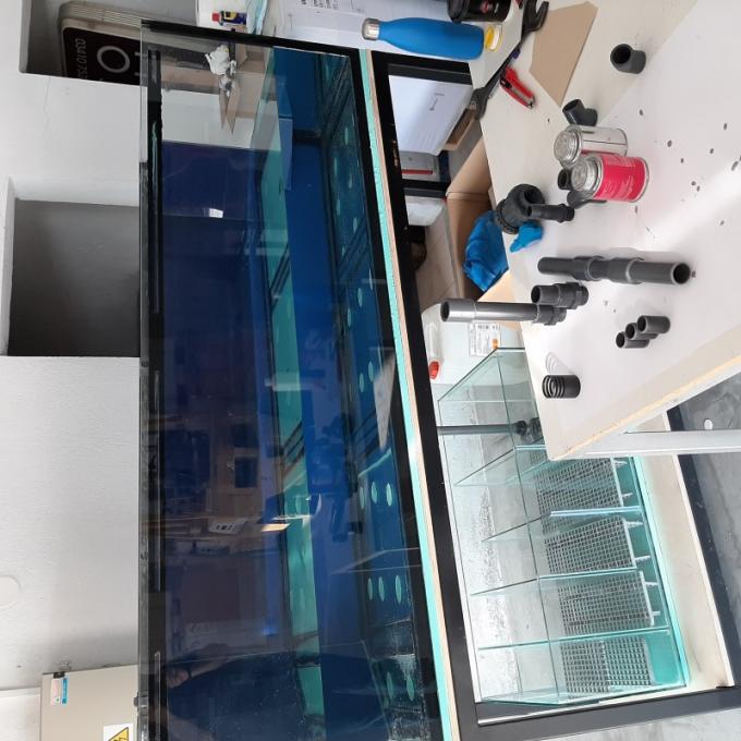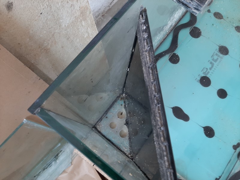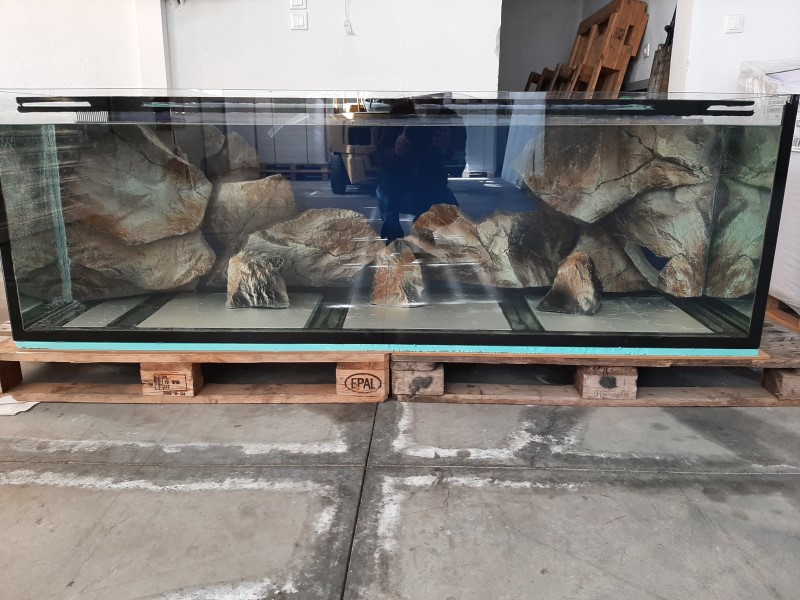 Στη γυάλα ξεκόλλησα όλες τις κόντρες, έβαλα νέες πάνω και κάτω όπως το ήθελα, άλλαξα το γυαλί της οθόνης με extra clear , έφτιαξα στις δυο γωνίες έναν πύργο υπερχείλισης για το σαμπ αριστερά και δεξιά μια γωνία για να κρύψω τα μπαστούνια του φίλτρου μιας και ήθελα να έχω ως επιλογές και φίλτρο και σαμπ με το σκεπτικό ότι όλα θα κρυφτούν από τα διακοσμητικά της Aquadecor. Πολλά τα λίτρα , φοβήθηκα και ενίσχυσα τις 4 κάθετες ενώσεις με αντίστοιχες ράβδους από γυαλί 15χιλ. Η ανακαίνιση κράτησε περίπου 4 μήνες, δεν υπήρχε λόγος να βιαστώ. Όλα έγιναν με αργά και προσεκτικά βήματα. Χώρος υπήρχε στο μαγαζί άφθονος άλλωστε. |