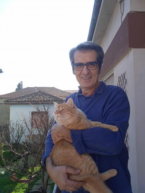 Αυτός είναι ο Φώτης. Τον περιμάζεψε ταλαιπωρημένο η κόρη μας, που έκανε την πρακτική της στην Δαδιά, τις μέρες της φωτιάς περιπλανώμενο κάπου στη Λευκίμμη. Θέριεψε από την περιποίηση και τώρα παίζει κρυφτό με την Τζέλα.