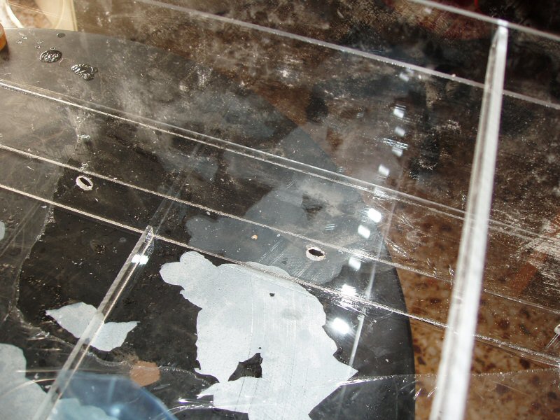 Μετα κάνω το εξής. Πρώτα αφου έχω ένα άλλο κομάτι plexiglass που δεν το χρειάζομαι αρχίζω και του κάνω τρύπες μέ ενα τρυπάνι και τα "πριονίδια" τα βάζω σε ένα ποτηράκι. Ρίχνω μετά μέσα χλωροφόρμιο ανακατέβω και ο "μαγικός ζωμός" είναι έτοιμος να ενυσχίσει και άλλο τις ενώσεις στην κατασκευή. Έχω δοκιμάσει και μικρά κοματάκια αλλα αργουν πολύ να λιώσουν. |