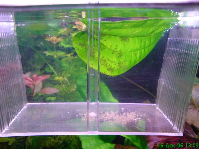 Πριν μερικές μέρες που είχαμε πάλι αυγουλάκια, έβαλα το φύλλο την τρίτη μέρα στην πλαστική γεννήστρα (και μέσα στο ίδιο ενυδρείο).