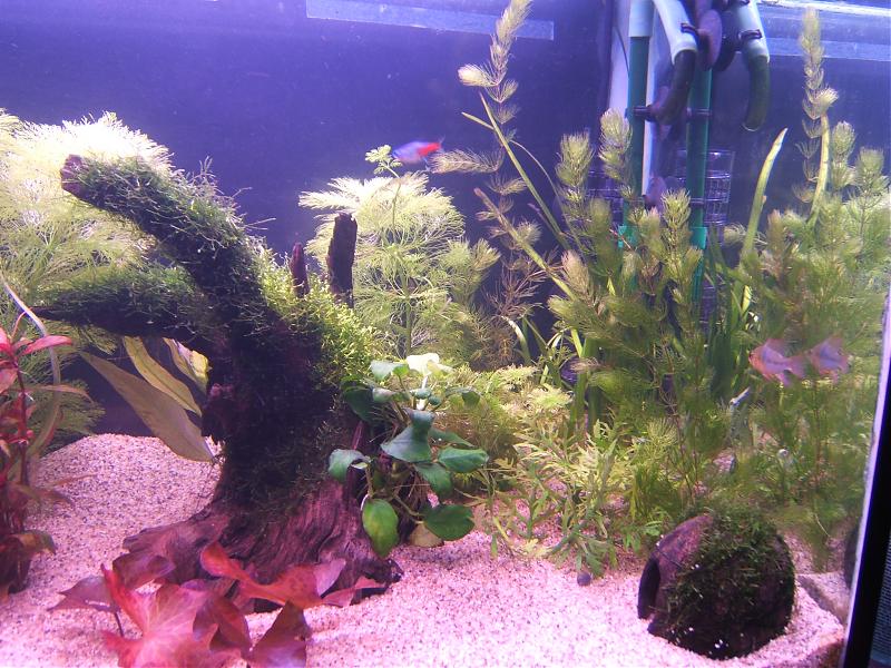 Φυτά: anubias:3 barteri , 2 nana , 1 petite , valisneria americana , microsorium pteropus , ceratofylum demersum , vesicularia dubyana , alternanthera reineckii , egeria densa
