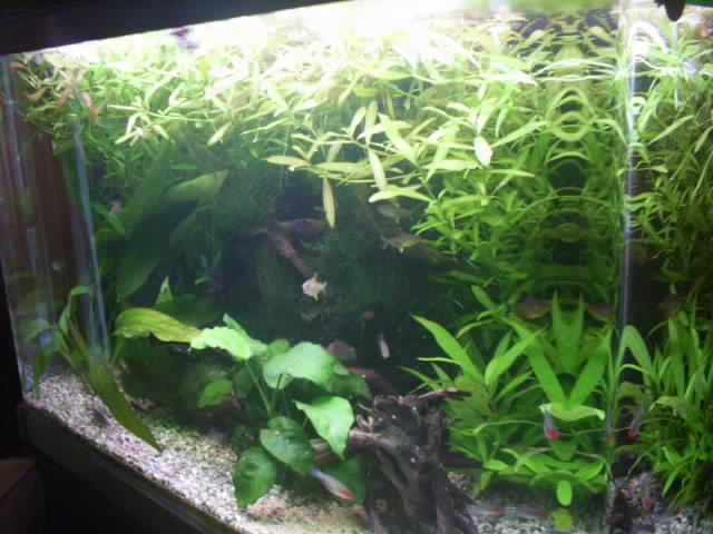 αν γουσταρεις ζουγκλα θα εβαζα μπολικο java moss αλλα πολυ και riccia και φακη πανω στη επιφανεια και μετα αντε να δεις τα ψαρια σου,,,.....