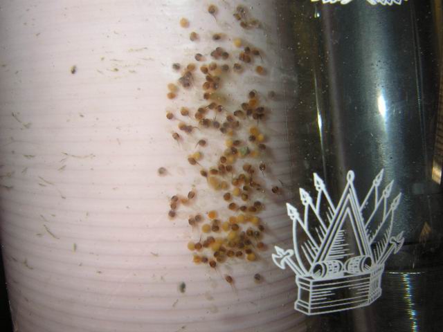 Με ανοικτο το στομα παρακολουθουμε το ζευγαρι μας να γενναει τα αυγουλακια του πανω στον κωνο...... Η μαμα αφηνει σειρες αυγων και ο υπερηφανος πατερας κανει περασματα απο πανω τους γονιμοποιωντας τα με το σπερμα του......Η διαδικασια αυτη μπορει να κρατησει και παραπανω απο μια ολοκληρη ωρα...... Καλο ειναι κατα τη διαρκεια της να κρατηθουμε μακρια απο το ενυδρειο (δυσκολο το ξερω) και να περιορισουμε ολες τις κινησεις γυρω απο αυτο ωστε να αφησουμε το ζευγος ηρεμο να επιτελεσει το καθηκον του......