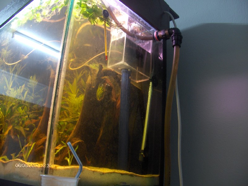 Το ενυδρείο έχει αρχίσει από την προηγούμενη εβδομάδα, μόλις τελείωσα και έβαλα το καπάκι δηλαδή. Έχει δρόμο ακόμα και ως προς την τοποθέτηση των φυτών και ως προς την ισορροπία του όλου συστήματος. Σαν ψαράκια σκέφτομαι να βάλω για αρχή τα δυο σκαλάρια που έχω και να αγοράσω άλλα 3 με 4 αφού πρώτα θα φέρω το νερό στα μέτρα τους. Κώστα όπως κατάλαβες και εσύ είναι νωρίς ακόμα μιας και τα φυτά δεν έχουν πάρει τα πάνω τους και τα περιμένω πως και πως. Alanboyωραία η άσπρη άμμος αλλά βρομίζει εύκολα, εγώ ήθελα μαύρη την περίοδο όμως που έψαχνα να βρω άμμο δεν βρήκα κάτι σε καλή τιμή .το σαμπ είναι 50Χ30Χ40 είναι από πλεξι γκλας (σαν πρώτη προσπάθεια καλό είναι αλλά με κάποια λαθάκια. Αντλία χρησιμοποιώ μία ατμαν 203 που έχει 2000λίτρα επιστροφή και 2 μέτρα μανομετρικό ύψος (δεν έχω μετρήσει την απόδοση που έχει τώρα). Σαν τρύπες στο ενυδρείο έχω κάνει 2 στον πάτο του, 1 ίντσα η κάθε μια και είναι στις πίσω γωνίες του. Χρησιμοποιώ την μία για την υπερχείλιση και την άλλη την έχω ταπωμένη(ίσος να την εκμεταλλευτώ σε μελλοντική χρήση) στο πλαϊνό τζάμι έχω κάνει μία τρύπα μίας ίντσας (την οποία την έχω ταπωμένη και αυτή) και μία ½ της ίντσας από την οποία έχω την επιστροφή του νερού από την αντλία. Η υπερχείλιση είναι καθαρά δικιάς μου πατέντας και θα σου έλεγα να κοιτάξεις σε DURSOαν ενδιαφέρεσαι να κάνεις κάτι παρόμοιο, γιατί είδα και έπαθα να την κάνω όσο το δυνατόν αθόρυβη. Στις φωτογραφίες που βάζω πιστεύω να σου λυθούν κάποιες απορίες. Mariahγια όλη την προσπάθεια μέχρι τώρα πήρα πολλά πράγματα από τα παιδία μέσα στο φόρουμ και ακόμα παίρνω και τα ευχαριστώ φυσικά .