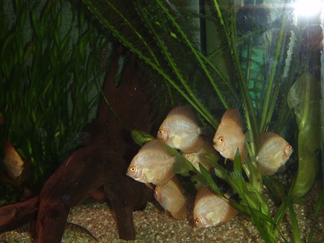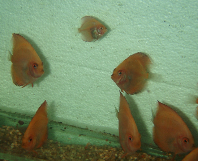......Οι πρώτες φωτογραφίες είναι από μία ομάδα έξι ψαριών που έβαλα στο ενυδρείο όπου υπήρχαν αρχικά τα ζευγάρια των δίσκων πριν αρχίσουν την αναπαραγωγή. Τα μεγάλα είναι τώρα μονίμως στις γεννήστρες. Η ανάπτυξή τους δεν συγκρίνετε με αυτήν των υπολοίπων ψαριών που είναι ακόμα σε άλλο ενυδρείο συνδεδεμένο στη σειρά με τις γεννήστρες όπου γίνετε συνεχείς αλλαγή νερού. Οι υπόλοιπες φωτογραφίες καταγράφουν την διαφορά αυτή. Ενώ στα 6 ψαράκια η ανάπτυξη προχωράει με αργότερους ρυθμούς και έχουν και αρκετά μαύρα στίγματα (στις φώτογραφίες φαίνονται και μερικά από spot algea μην μπερδευτείτε, δεν είναι και τόσο πολλά) τα υπόλοιπα ψαράκια έχουν μεγαλώσει περισσότερο και είναι καθαρά χωρίς σχεδόν καθόλου στίγματα.