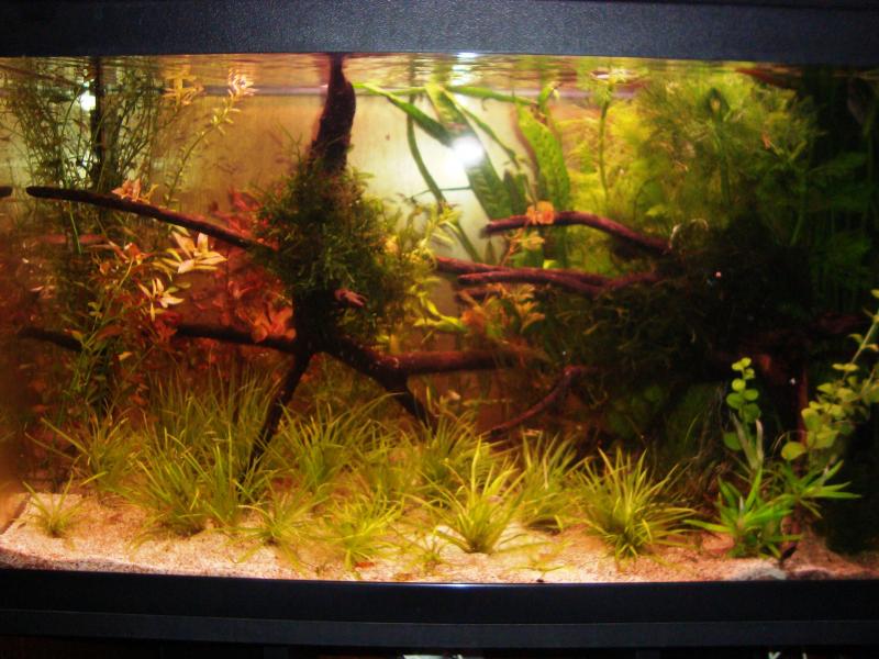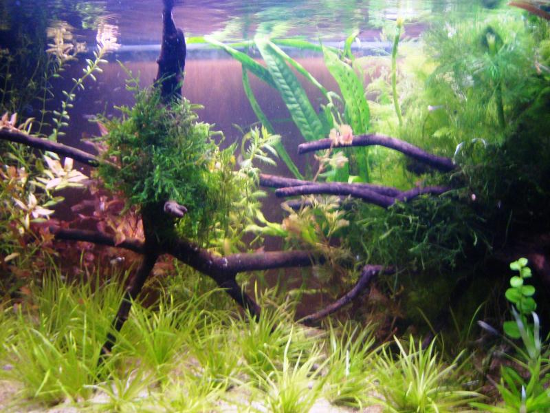 Πράγματι νομίζω οτι υπερέβαλες με την Blyxa πιστεύω πως θα ήταν καλύτερα να την τραβούσες δεξια -αριστερα σε συστάδες που θα έχουν και πιο ωραίο οπτικό αποτέλεσμα και να μείνει αδειο το κεντρικό τμήμα.Τώρα για το ξύλο κάτι δεν μου κάθεται καλά μου φαίνεται οτι κλείνει όλο το κέντρο του ενυδρείου ,ξέρω γω τώρα ;βάλτο και κάπως διαφορετικά μηπως δείξει πιο φυσικό γιατι δείχνει κάπως στημένο.