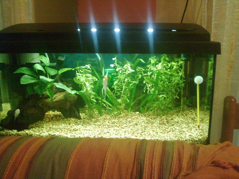 3. ψαρια (7 αρλκινους,1ανσιστρους που γινετε 10-13 εκατοστα,ενα ντολιχοπτερ μαυρο,1αγγελοψαρο 7-8 εκατοστα ,2 κλουν "προσορινα")
