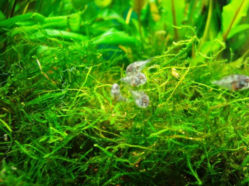 Στις δυο πρωτες ο αρσενικος ηταν ακριβως απο κατω απο τη θυληκια και καθως γεννουσε τα ετρωγε με μανια! Μεχρι που την δαγκωνε και τα αυγα ταξιδευαν στον αερα ... και τα ετρωγε!! Τη τριτη φορα ομως ... αποδειχτηκε πολυ προστατευτικος πατερας! Καθοταν απο πανω και δεν αφηνε κανενα να πλησιασει ... ουτε καν την μητερα η οποια εχει φαει πολυ ξυλο η καημενη! Εγω πηγα να βαλω σφουγγαρι τις εφαγα και εγω τις τσιμπιες μου! Παρατηρουσα τη μητερα να εχει ετοιμη βλεννα για τα μικρα! Λες και ηταν συννενοημενα τα μικρα μολις κολυμπησαν ελευθερα κολλησαν επανω στη μητερα! Τωρα παιρνει το αιμα της πισω και καμια φορα ριχνει καμια στον δικο της! Η γνωστη παντοφλα!! Η τριτη ομως .... ηταν εκπληξη για μενα! Συγνωμη για τη ποιοτητα των φωτο ...