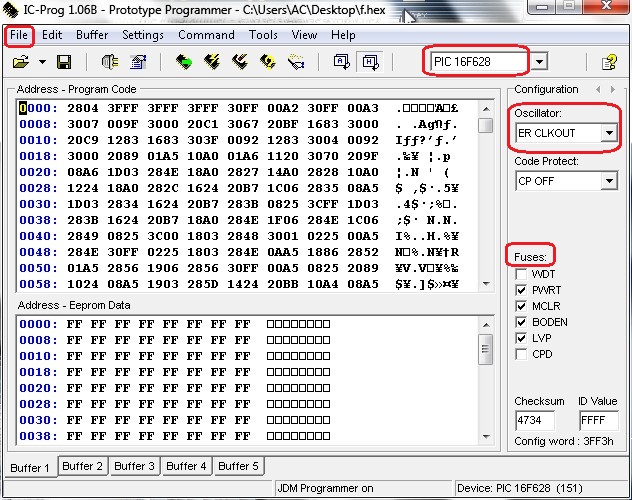 "rwtiseton an mporoyme na baloyme ton 16f628A anti gia ton sketo kai sto ic-programmer ti epiloges vasoume sto oscilator"