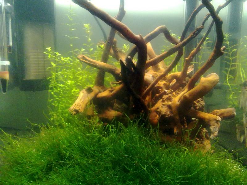 Η μοςς όπως είναι τοποθετημένη μου μοιάζει σαν ξένο σώμα. Σαν κάτι να μην κολλάει. Σίγουρα αν την κούρευες να έδειχνε καλύτερα. Επίσης οπωσδήποτε θα πρέπει να βάλεις περιμετρικά κάποια φυτά. Εμένα μου αρέσει πολύ το Micranthemum umbrosum. Βεβαίως έχει περισόττερες απαιτήσεις από την μοσσ