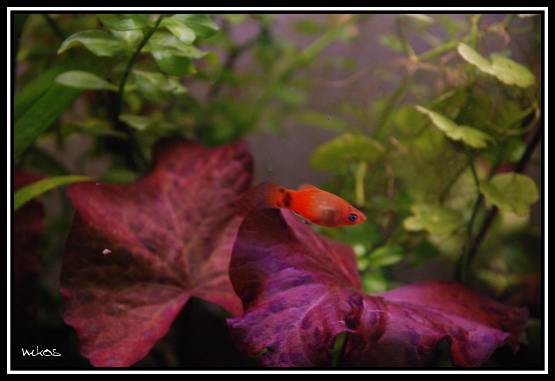 Το ενυδρείο αυτό τρέχει σχεδόν ένα χρόνο, μόνο με ζωοτόκα και τελευταία μόνο με platy, εκ των οποίων τα περισσότερα είναι γέννες δικές μου.