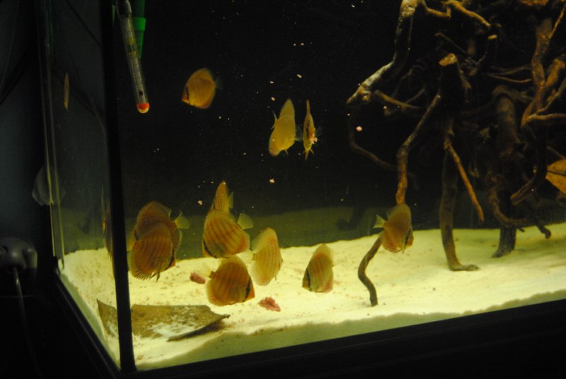 τα μικρα ειναι ακομα λιγο φοβισμενα , φωτα ακομα δεν εχω αναψει στο ενυδρειο θα αναψω απο δευτερα , προς το παρον αρκετα ταισματα και καθε βραδυ 50-60 λιτρα νερο αλλαγη .