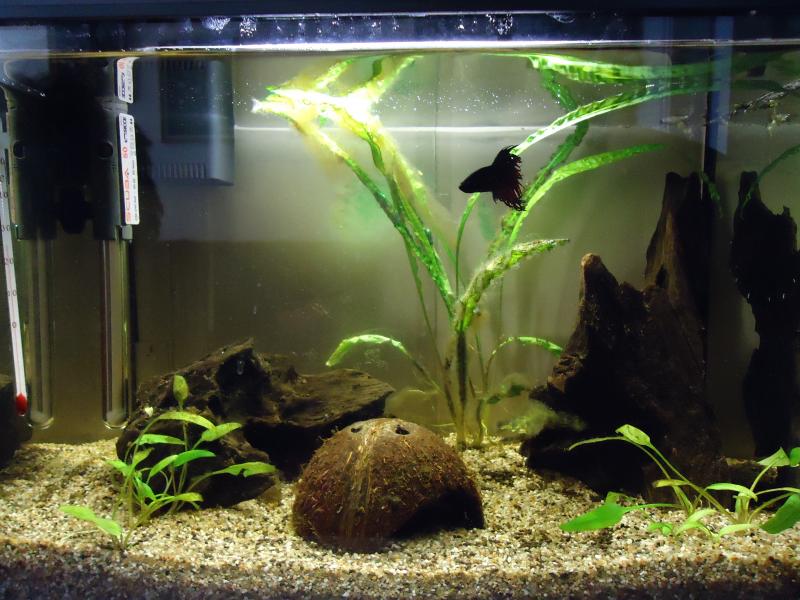 Συμφωνώ με τα παιδιά. Κανένα φυτάκι ακόμη, γρήγορης ανάπτυξης, μόνο καλό θα του κάνει. Αν βρεις και σαλιγκαράκια Clithon Corona (Horned Zebra) θα βοηθήσουν κι αυτά.