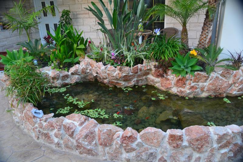 Είναι πολύ εντυπωσιακή, γιατί το όλο κτίσμα με τις πέτρες και τα τροπικά φυτά της δίνουν μια διαφορετική άποψη και δείχνει πολύ μεγαλύτερη από τα 1500 λίτρα.
