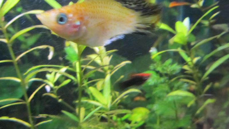 να το αποχαιρετησω απο τον κοσμο τουτο.δυσκολο να φανει απο τη photo αλλα εχει κατι σαν βαμβακι στο ενα του πτερυγιο..τι να κανω?μην την πατησουν και τα αλλα ψαρια φοβαμαι...